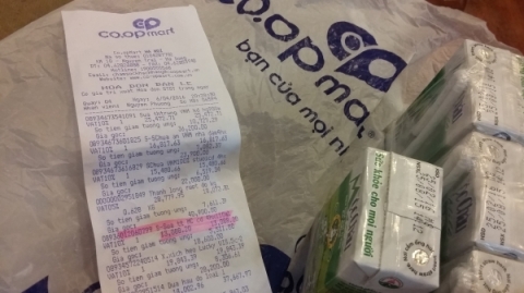 Sản phẩm sữa Mộc Châu (có kèm hóa đơn) được mua tại siêu thị Co.op Mart Hà Đông đã hết hạn sử dụng.