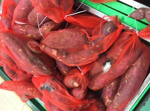 Nhiều sản phẩm khoai lang đã bị mốc trắng nhưng vẫn được bày bán